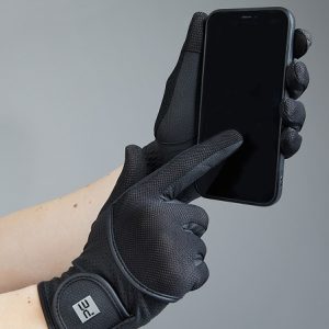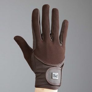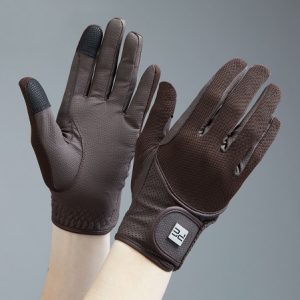 The palm of the glove is made from lightweight synthetic leather, providing optimum grip on the reins. A touch screen panel on the index finger and thumb allows for use of your phone without removing your gloves. Complete with Velcro closure with an elegant PE branded badge, these riding gloves are ideal for your everyday equestrian activities and competition use.